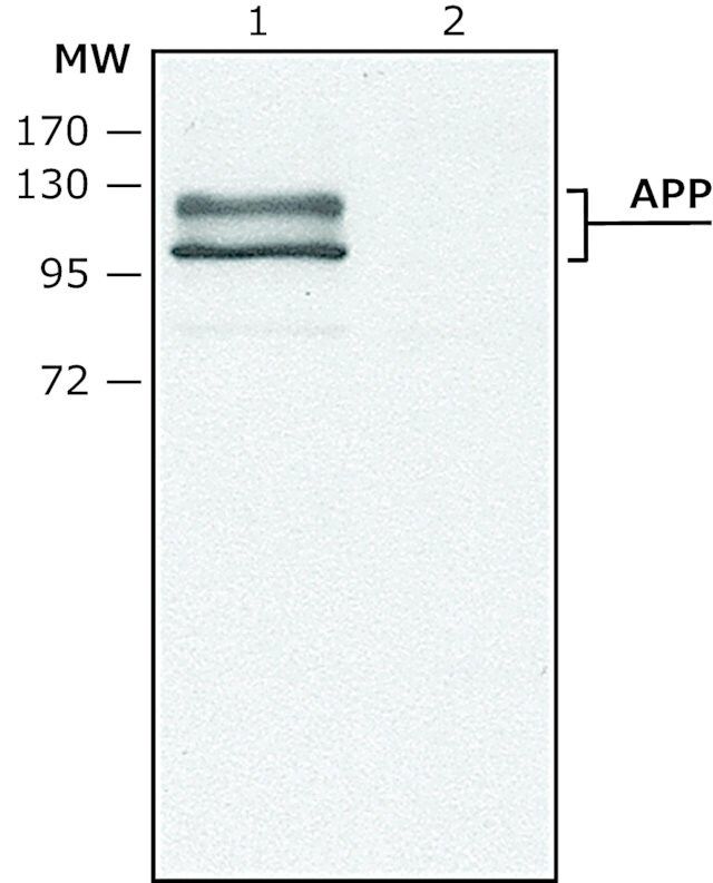 免疫原序列与大鼠和小鼠APP695 以及APP同种型APP751 和APP770相同。该抗体可识别APP695、APP751 和 APP770。
