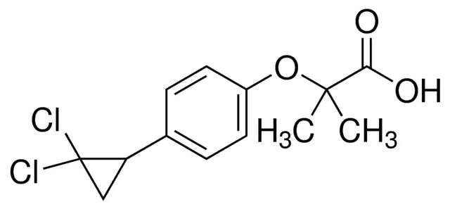 | SMILES string | CC(C)(Oc1ccc(cc1)C2CC2(Cl)Cl)C(O)=O |