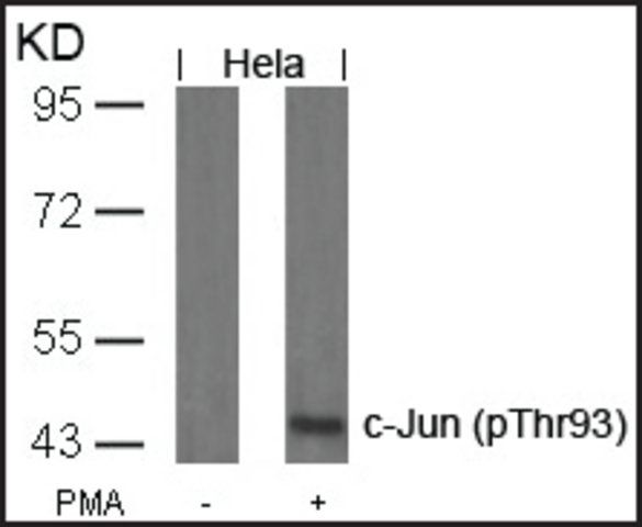 Peptide sequence around phosphorylation site of threonine 93 (T-P-T(p)-P-T), according to the protein JUN.