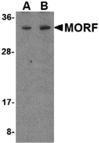 Antibody was raised against a 18 amino acid synthetic peptide from near the amino terminus of human MORF4.